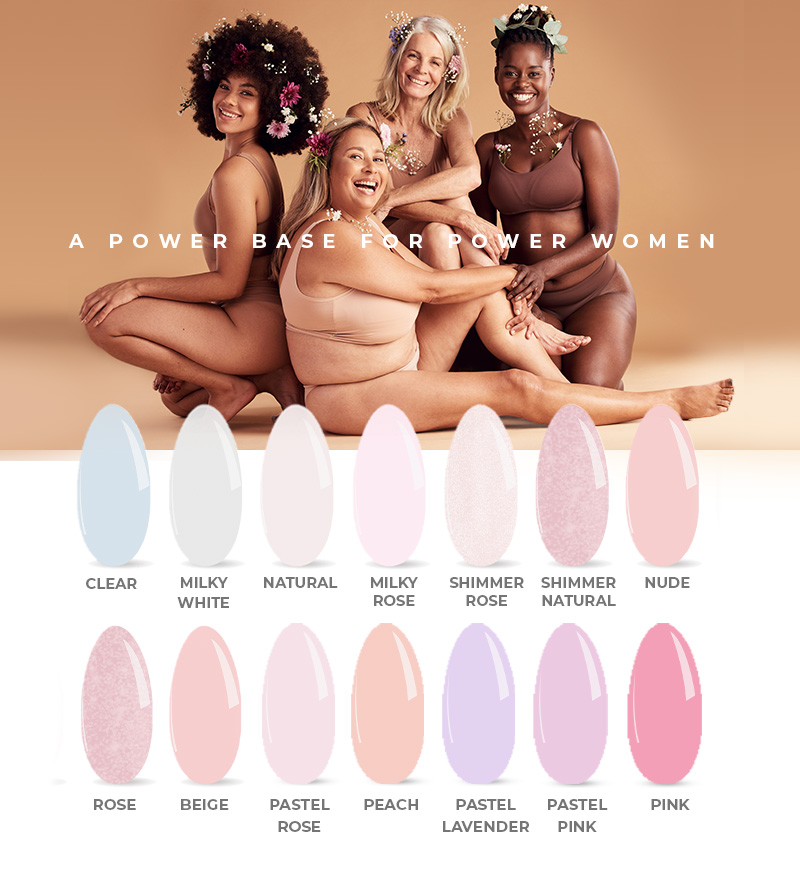 Power Base Gel može se koristiti kao baza za gel lak i gel u boji ili samostalno. Vrijeme sušenja je 60 sekundi u UV/LED lampi, odnosno 120 sekundi u UV lampi. Postojana je baza za gel lak boje srednje do guste konzistencije te je pogodan za prirodno (minimalno) produženje tipsama ili šablonama za modeliranje. Prikladan je za prirodno meke nokte jer im daje čvrstoću. Lako se uklanja turpijanjem ili odstranjivačem gel laka te nudi punu snagu baze izravno iz bočice s kistom.