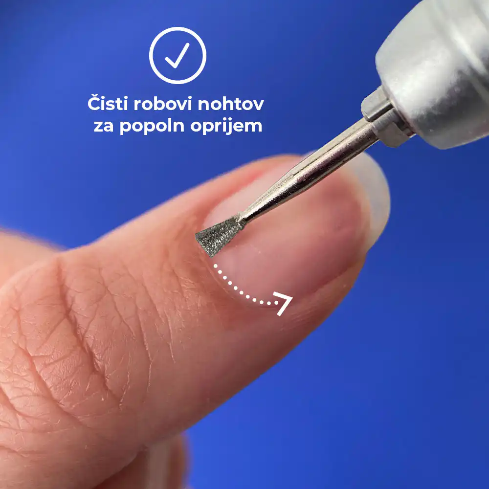 Čisti robovi nohtov ne poskrbijo le za lepši videz, temveč tudi za dolgotrajnost vašega gela, gel laka ali konic. Odstranjevanje odvečnega materiala z robov nohtov preprečuje neželeno dvigovanje materiala.