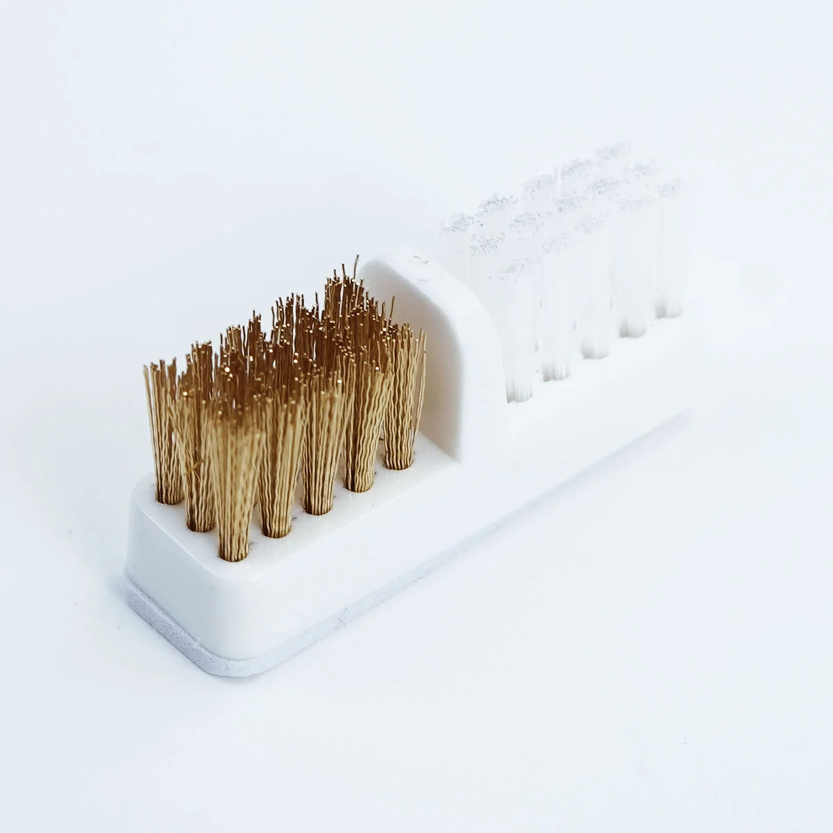 Po grobem čiščenju z medeninasto ščetko najlonska stran poskrbi za končni sijaj. Uporablja se za natančno čiščenje in je zato idealna za fine diamantne nastavke. Nežne najlonske ščetine čistijo nežno, temeljito in zanesljivo.