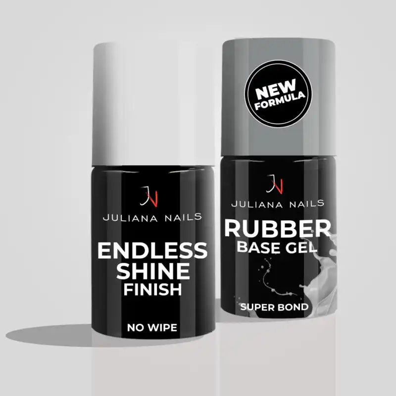 Ta ugoden set vsebuje naš priljubljeni Rubber Base Gel – Clear, ki služi kot stabilna baza za gel lak ali lepljivi gel, obenem pa je popoln za BIAB nail art. Poleg tega prejmete naš Gel Lak Endless Shine Finish – No Wipe, ki zagotavlja izjemno dolgotrajen visok sijaj vašim nohtom. Oba UV laka sta HEMA free, kar jih naredi primerna za alergike ali za vse, ki se želijo izogibati tej sestavini.