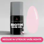 Naš Biotin Base Gel nudi stabilno podlago, tudi če so vaši nohti naravno mehki ali prožni. Povečuje obstojnost barv vaših gel lakov in ščiti pred lomljenjem ter luščenjem.