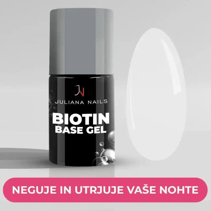 Naš Biotin Base Gel nudi stabilno podlago, tudi če so vaši nohti naravno mehki ali prožni. Povečuje obstojnost barv vaših gel lakov in ščiti pred lomljenjem ter luščenjem.