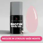 Naš Biotin Base Gel nudi stabilno podlago, tudi če so vaši nohti naravno mehki ali prožni. Povečuje obstojnost barv vaših gel lakov in ščiti pred lomljenjem ter luščenjem.