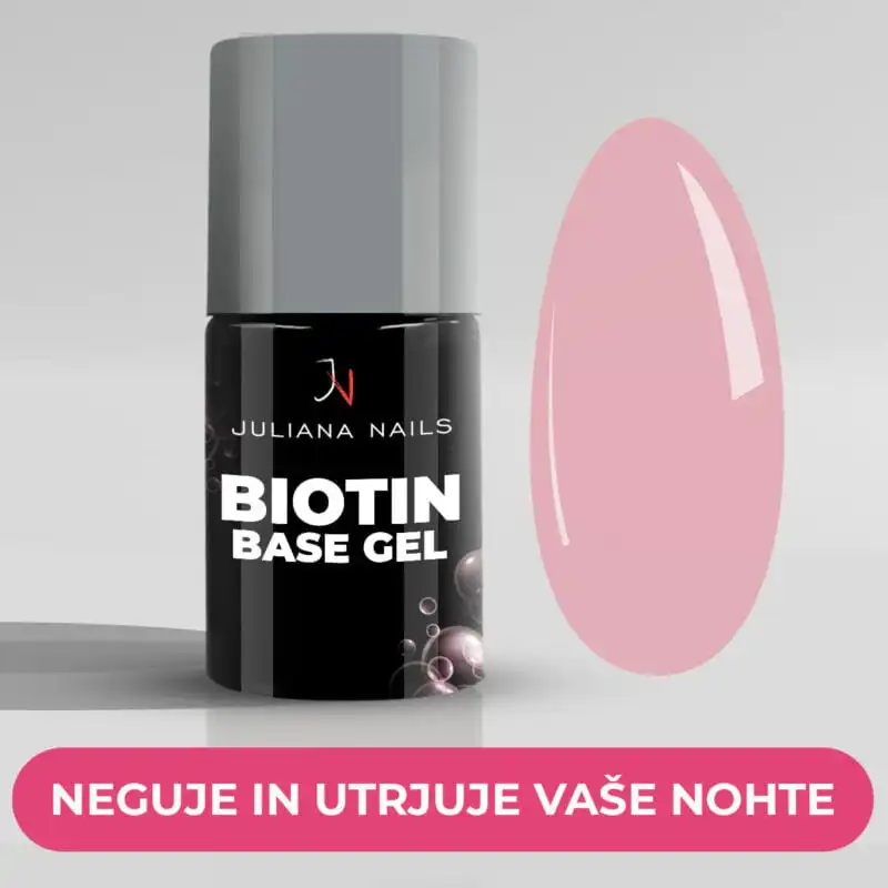 Naš Biotin Base Gel nudi stabilno podlago, tudi če so vaši nohti naravno mehki ali prožni. Povečuje obstojnost barv vaših gel lakov in ščiti pred lomljenjem ter luščenjem.