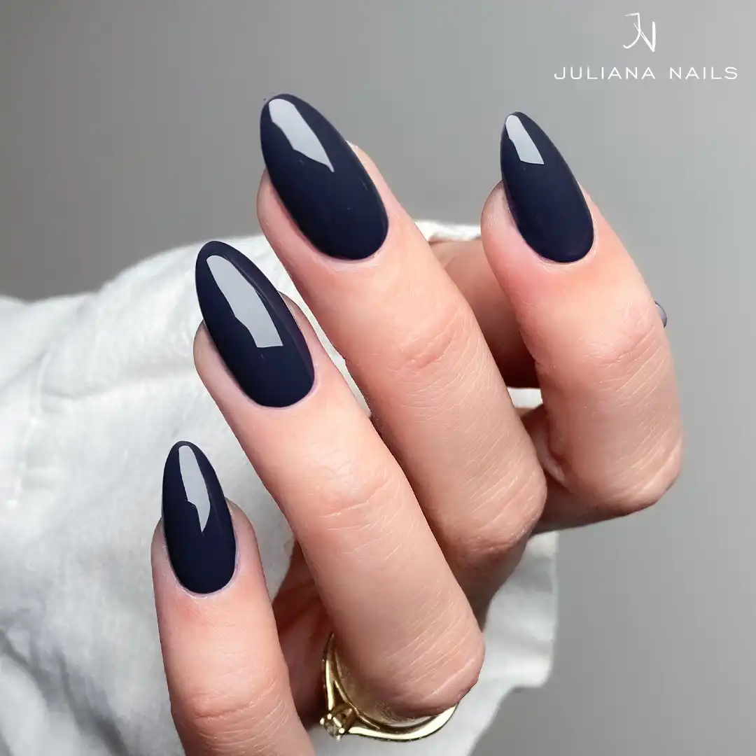 Naš Gel Lak No Signal je izjemno temno modro-sivega odtenka, ki spominja na mirne zimske noči.