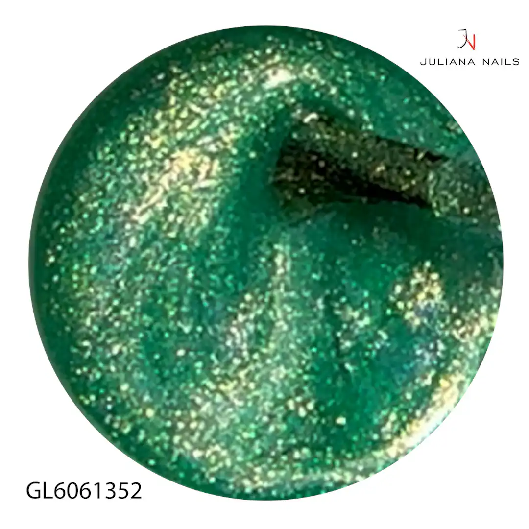 Naš gel lak Glow With It je nežno zelene barve s plemenitim zlatim in rožnatim leskom – eleganten in popoln za vsako priložnost.