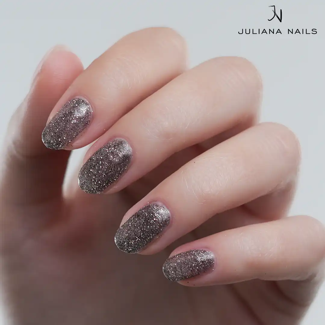 Naš Gel Lak Ferris Wheel je zelo temna mešanica bleščic v antracitni, srebrni, temno rjavi in rdeči barvi za dramatičen zaključek.
