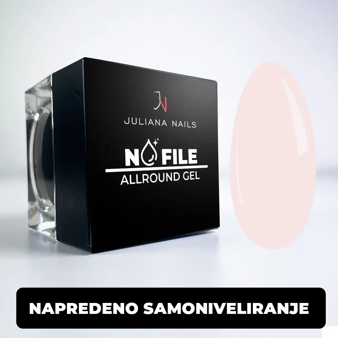 No File Allround Gel je vaš vsestranski pomočnik za modeliranje nohtov. Ne glede na to, ali ga uporabljate kot bonding, gradilni ali zaključni gel – ta enofazni gel pokrije vse plasti oblikovanja. Za popolne in dolgotrajne rezultate potrebujete le en gel.