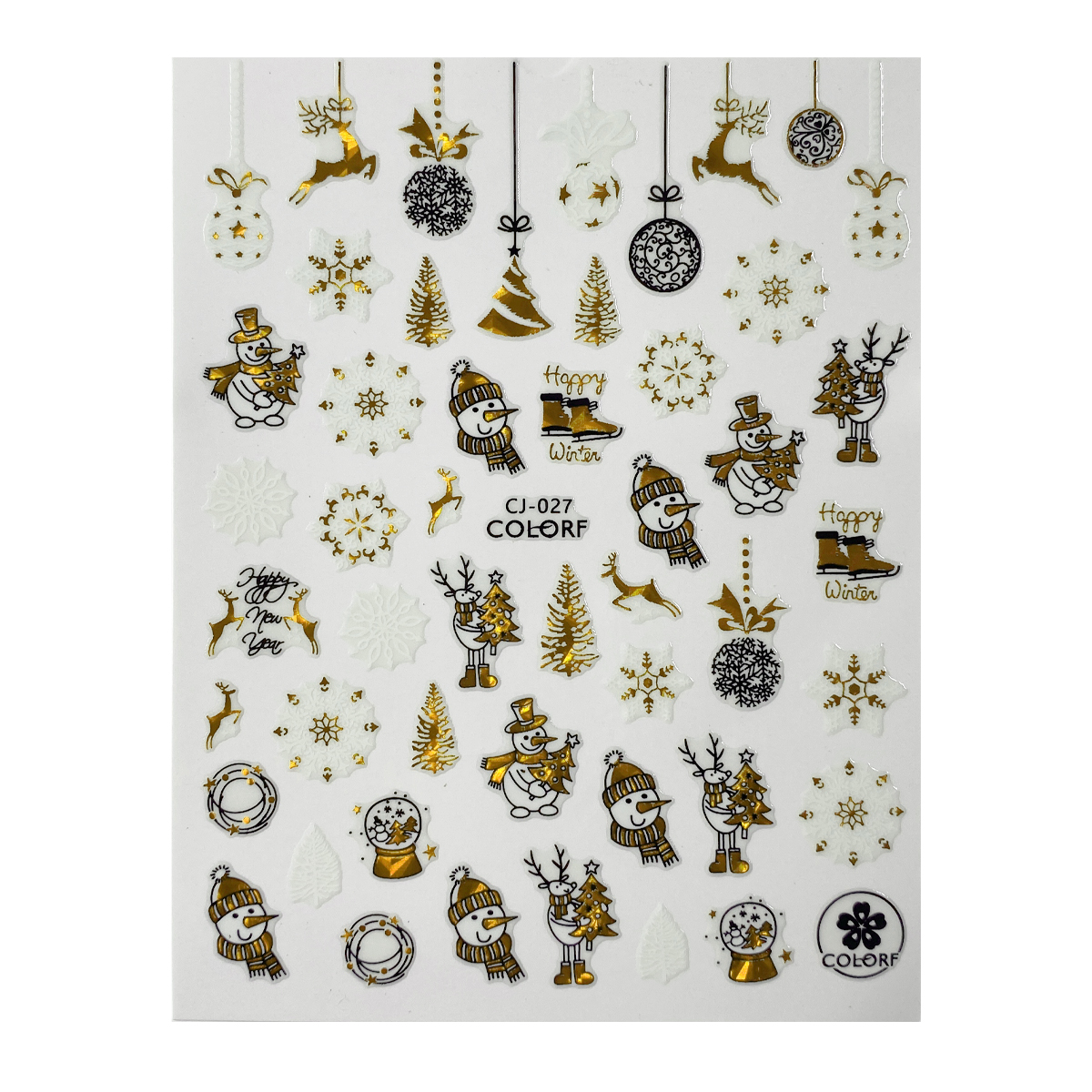 Ove naljepnice za nokte s božićnim motivima i metalik efektom osiguravaju elegantan božićni dizajn noktiju. Snjegovići, sobovi, božićna drvca – sve u crnoj i zlatnoj boji.