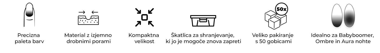 Ne, res so večnamenske! Primerne so za vse vrste palet barv, vključno z Babyboomer dizajni in videzom Aura. Uporabite jih lahko tudi za nanos pigmentov, s čimer ustvarite enakomeren krom ali Aurora učinek.