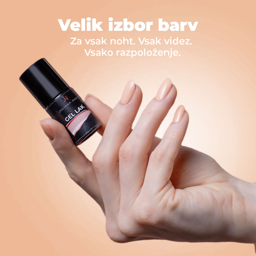 Trudimo se prikazati barve naših gel lakov kar se da natančno. Vendar se lahko barve rahlo razlikujejo od dejanske barve, odvisno od kakovosti zaslona ali prikaza.